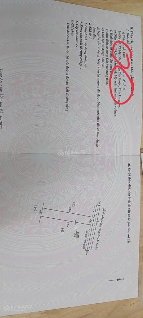 Đất nền siêu đẹp tại xã Mỹ Lộc, Cần Giuộc, Long An đang chờ đón chủ mới. Diện tích 108m², giá chỉ 1,2 tỷ VND, pháp lý đầy đủ với sổ đỏ. Mặt tiền rộng 4m, đường vào 3m, cực kỳ thuận tiện cho việc xây dựng và sinh sống. Hướng cửa chính Đông Bắc, phong thủy ổn áp cho gia chủ. Đây là cơ hội tuyệt vời cho những ai đang tìm kiếm một mảnh đất lý tưởng để đầu tư hoặc xây dựng tổ ấm.